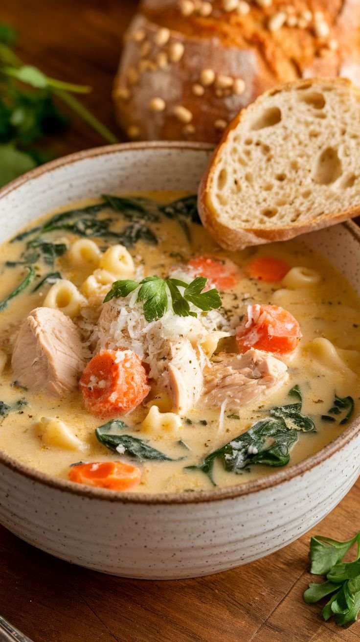 - Cook the Base Early: Prepare the soup base (minus the cream, pasta, and spinach) a day before and refrigerate. Add the finishing touches when reheating.