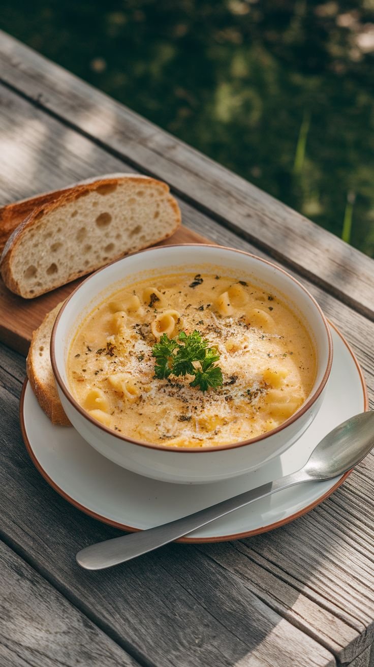 Pair this creamy and hearty soup with a crisp white wine like Sauvignon Blanc, which cuts through the richness, or opt for a sparkling water with fresh lemon for a light, refreshing touch.